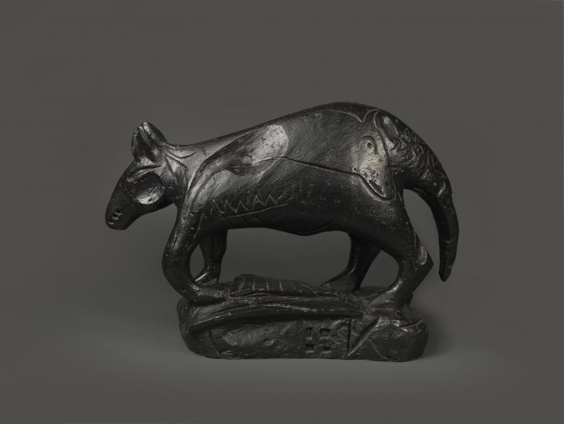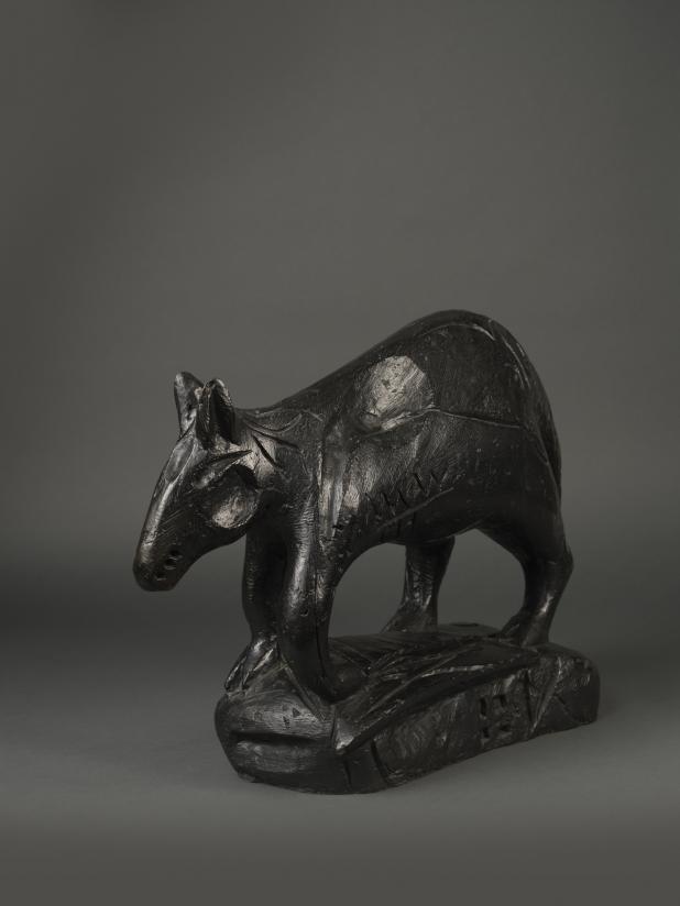 In this surprising world, the sculpted Fantastical Beast—a digression from identity, a complex hybridization between human, animal, and the botanical—seems, on the contrary, well balanced and quite serious. The beast’s vigilance contrasts with the peaceful, carefree couple nestled along its side. The image of lovers floating in the clouds reappears again and again throughout Chagall’s body of work. A similar composition is found in La Bastille, 1953, where the couple is paired with a large red cow. In The Fantastic Beast, the migratory and protective animal is a figure of travel—an allegory of peregrination and composite identity—thereby echoing the artist’s life as it was punctuated by two world wars, and marked by immigration and exile. A timeless piece, this sculpture can also be perceived as a representation of the benevolence and wisdom of the living, transcended by a feeling of humility and fascination before the laws of nature in the Russian mind, from the Middle Ages to landscape art in the19th and early 20th centuries. “It is when the artist is in a minority before nature that he has the most luck with it, if he submits.” (Marc Chagall.)