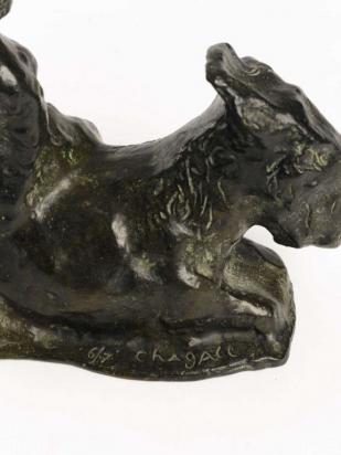 Marc CHAGALL, Jeune femme sur la chèvre, circa 1981 - 1982, bronze, 17,6 x 26 x 10,5 cm © ADAGP, Paris, 2025