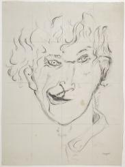 L’autoportrait occupe une place centrale dans l’œuvre de Marc Chagall, qui en compte plusieurs centaines. Tout en perpétuant un genre bien connu de l’histoire de l’art, l’artiste se l’approprie et le renouvelle, puisant dans l’art classique mais aussi dans les courants artistiques de son époque, tels le cubisme ou le futurisme. Ses autoportraits se déclinent au travers de nombreuses techniques, comme la gravure (Autoportrait au sourire, 1924-25), la peinture (Autoportrait au col blanc, 1914) et, plus tardivement, la sculpture (Autoportrait, 1952). Chagall joue avec son image, à l’instar de Rembrandt qu’il admire, tantôt déformée (Autoportrait à la grimace, 1917), stylisée (Autoportrait au violon, 1954) ou rajeunie (Le Grand Visage ou Autoportrait au visage jaune, 1969), s’éloignant de la mimêsis (imitation). À ces nombreux autoportraits s’ajoutent les incursions de l’artiste dans ses grandes compositions, comme L’Apparition de la famille de l’artiste (1935-47) ou La Danse (1950), et la représentation de doubles métaphoriques du peintre comme dans Le Coq (1947). Animaux du bestiaire chagallien ou bouquets s’assimilent alors à des autoportraits symboliques comme les Fleurs sur la chaise (1926). Ce goût pour l’autoreprésentation, souvent associée aux attributs du peintre comme dans Autoportrait aux sept doigts (1912-13), révèle un questionnement perpétuel de Chagall sur son identité et son art.