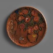 Savamment agencées dans des centaines de compositions, les fleurs de Chagall s’y répandent et y prennent vie. Jamais cantonnés au rôle de simples accessoires, les bouquets sont signifiants, voire personnifiés, à l’instar du « portrait » fleuri dans Fleurs sur la chaise, 1926. Expression de l’indicible, d’un sentiment profond reliant l’artiste au monde et à la vie même (cf. La Paix ou L’Arbre de vie, 1976, vitrail, chapelle des Cordeliers de Sarrebourg), les fleurs sont par ailleurs une figure sacrificielle durant les périodes de menace et de guerre : « Ce ne sont pas les pauvres et les innocents qu’il fallait mettre dans les prisons mais plutôt les fleurs niçoises, meurtries et orphelines ; et les jeter dans les fours. Ces personnes n’ont pas besoin des fleurs. » Installé dans le Midi à partir de 1951, Chagall est fasciné par la lumière et par la luxuriante végétation méditerranéenne. Déclinées dans toutes les techniques pratiquées par l’artiste, les fleurs – floconneuses, étincelantes, vibrantes, exaltées – l’accompagneront et le transcenderont tout au long de son œuvre.